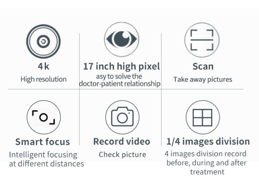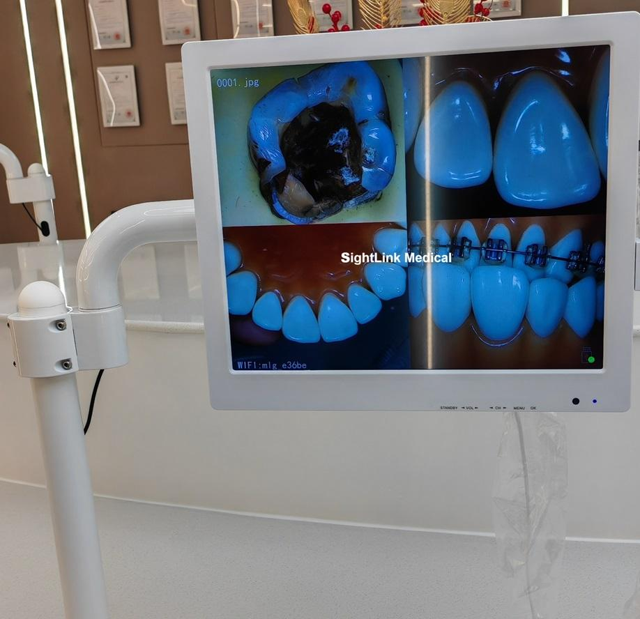 1.  4″ CMOS high resolution 1080P AHD intraoral camera with 17 inch multimedia monitor all-in-one.