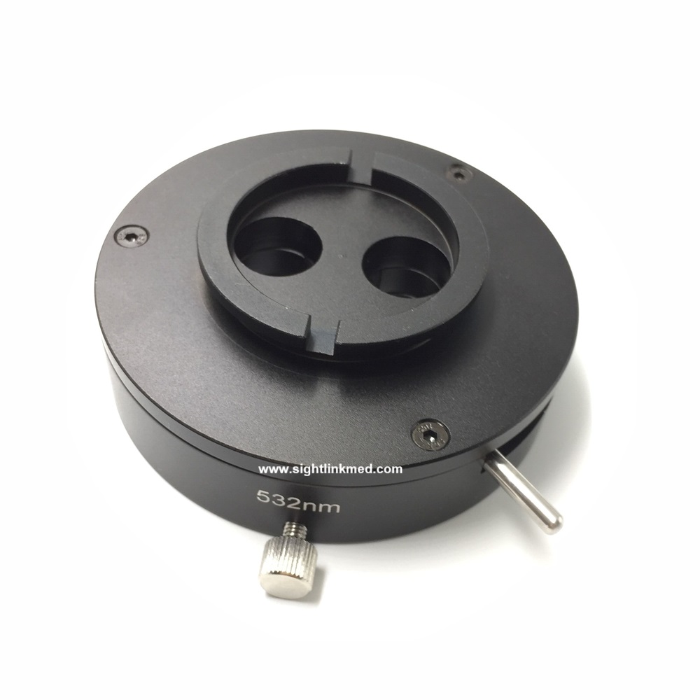 The filter lens can be shift to “off” position when laser surgery finished, and turn on when during surgery.