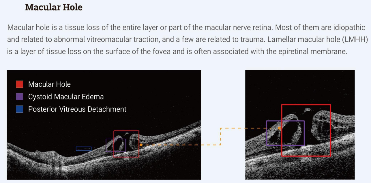 A fullyautomatic artificial intelligence OCT with fully independent intellectu-al property rights. Combined with multi-image registration and imageenhancement technology and industry-leading analysis technology, itprovides a full-stack solution for clinical diagnosis and treatment,including automatic image capture, accurate image analysis, intelli-gent eye health record management, and real-time data sharing onthe cloud.
