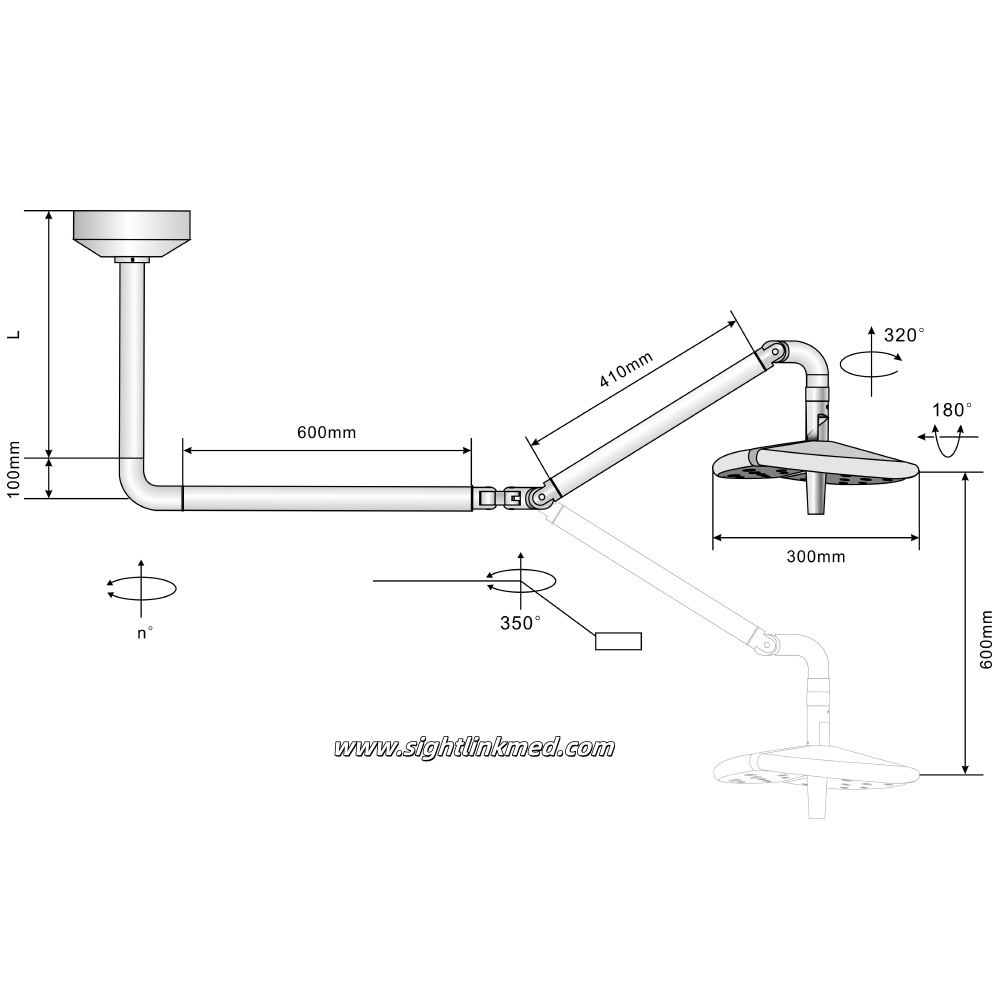 The led surgical light arm can be rotated 180° and pushed up and down 30° vertically