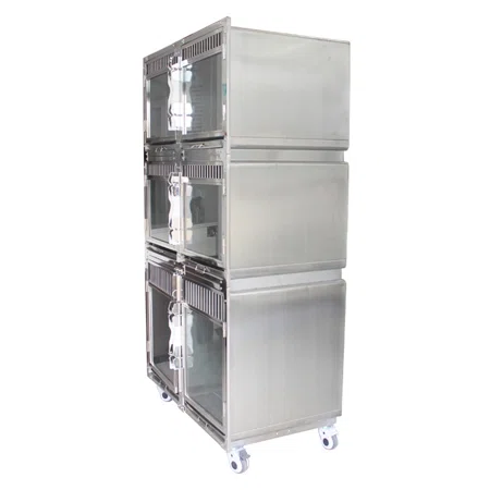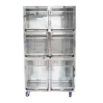 A veterinary cage is a specialized enclosure designed to safely and temporarily house animals in a veterinary clinic or hospital. These cages are typically made of durable materials like stainless steel and come in a variety of sizes and configurations to accommodate different types of animals. These veterinary recovery cages provide a safe and secure space for animals to recover from medical procedures or receive treatment while allowing veterinary staff to observe and monitor their condition.