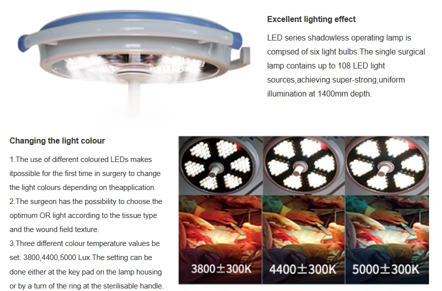 LED series shadowless operating lamp can widely be used in diversified operation occasion to meet the demand of the illumination, and it is the ideal illumination instrument of the modern operating theater.