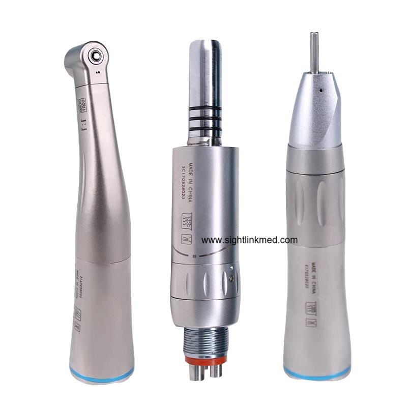 This dental handpiece adopts optical fiber rod to guide light, with high efficiency of transmitting light source, and can be