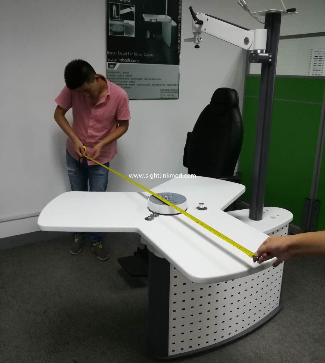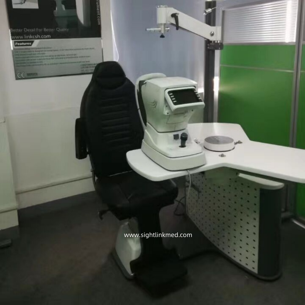 Adopt European style in appearance design, simple and fashionable,ergonomic design.Universal function and good performance and easy operation.Sliding table accommodates two instruments and provides with 90 degrees’ rotation.Handoperated phoropter arm can swing up and down, left and right.Reclining Chair can smoothly lift up and down, forward and backward with low noise. It can be used with kinds of ophthalmic instruments, and it’s the ideal choice for hospitals, clinics and optical shops.