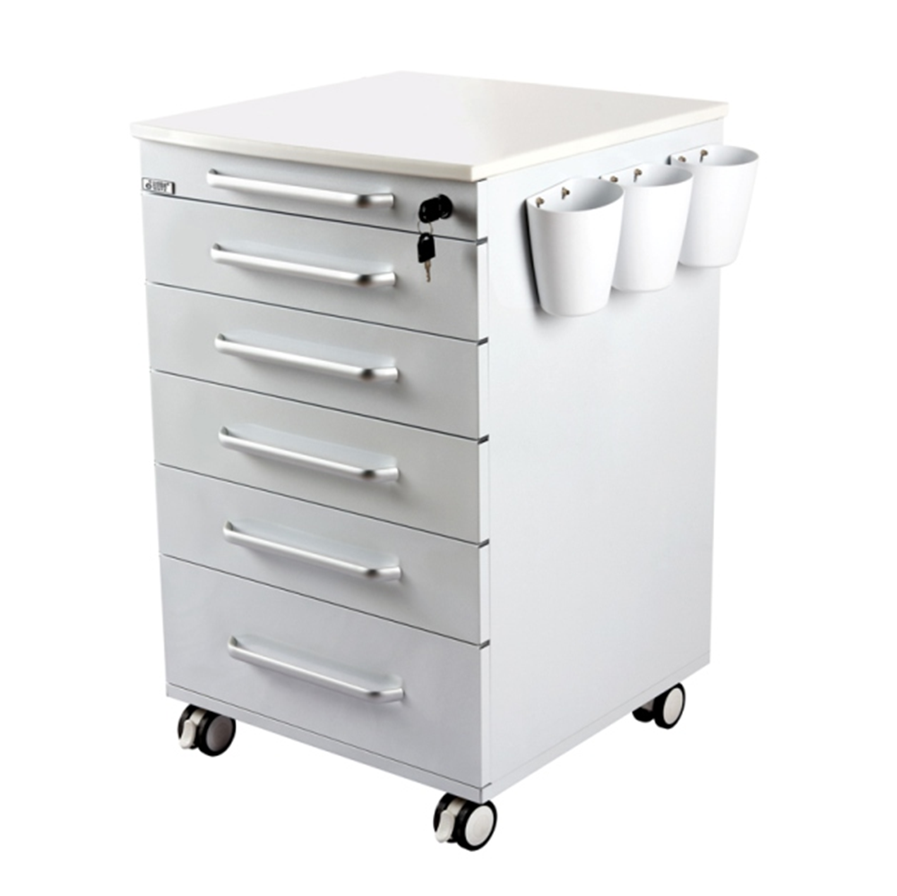 This is a professional mobile side cabinet designed for dental clinics, featuring a clean, modern appearance and practical functionality.