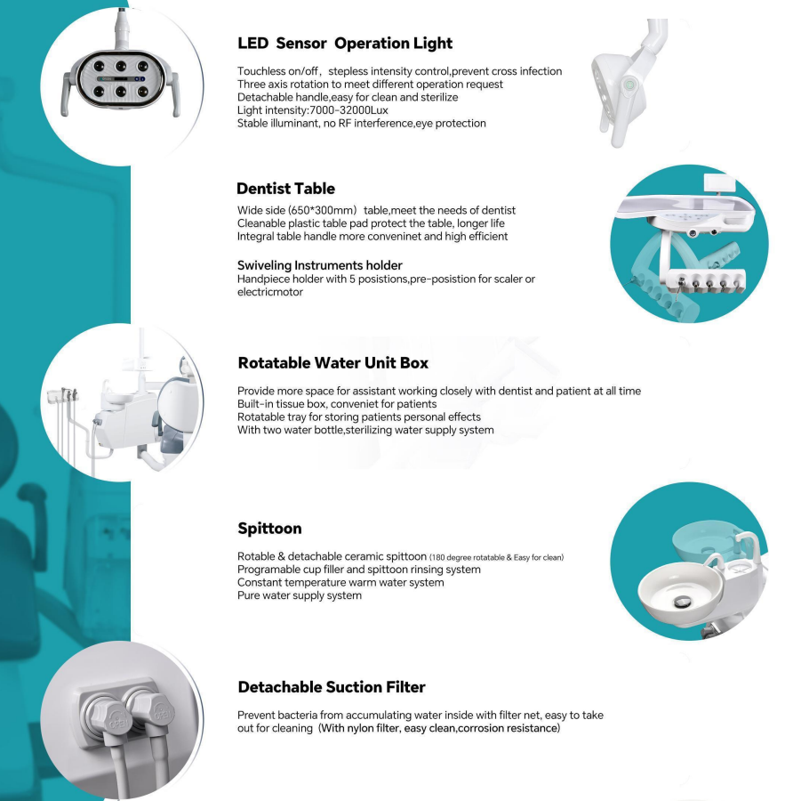 Ergonomic Dental Chair Luxury Dental Set Chair Unit with Dentist Stool KLT-6220 A3