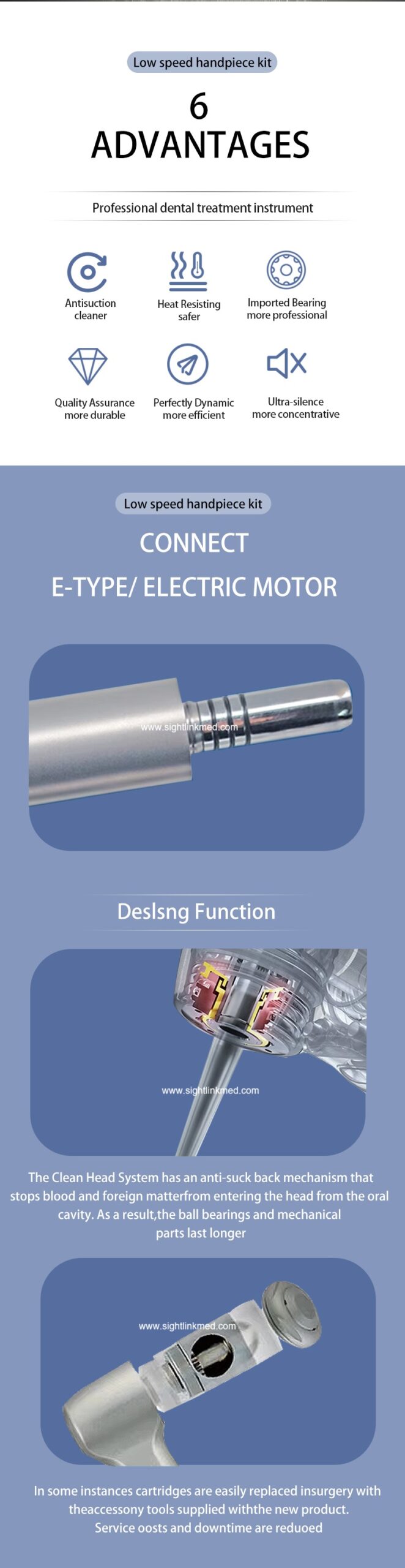 Inner/External Channel 1:1 Low speed set The whole body is made of stainless steel, the head is manufactured by integral molding, more durable.