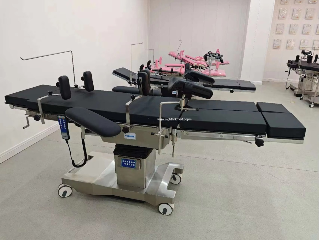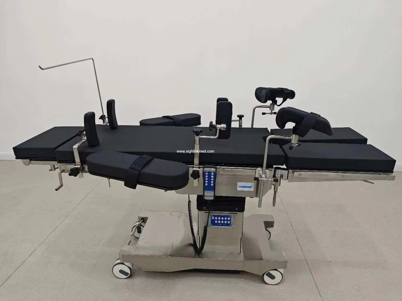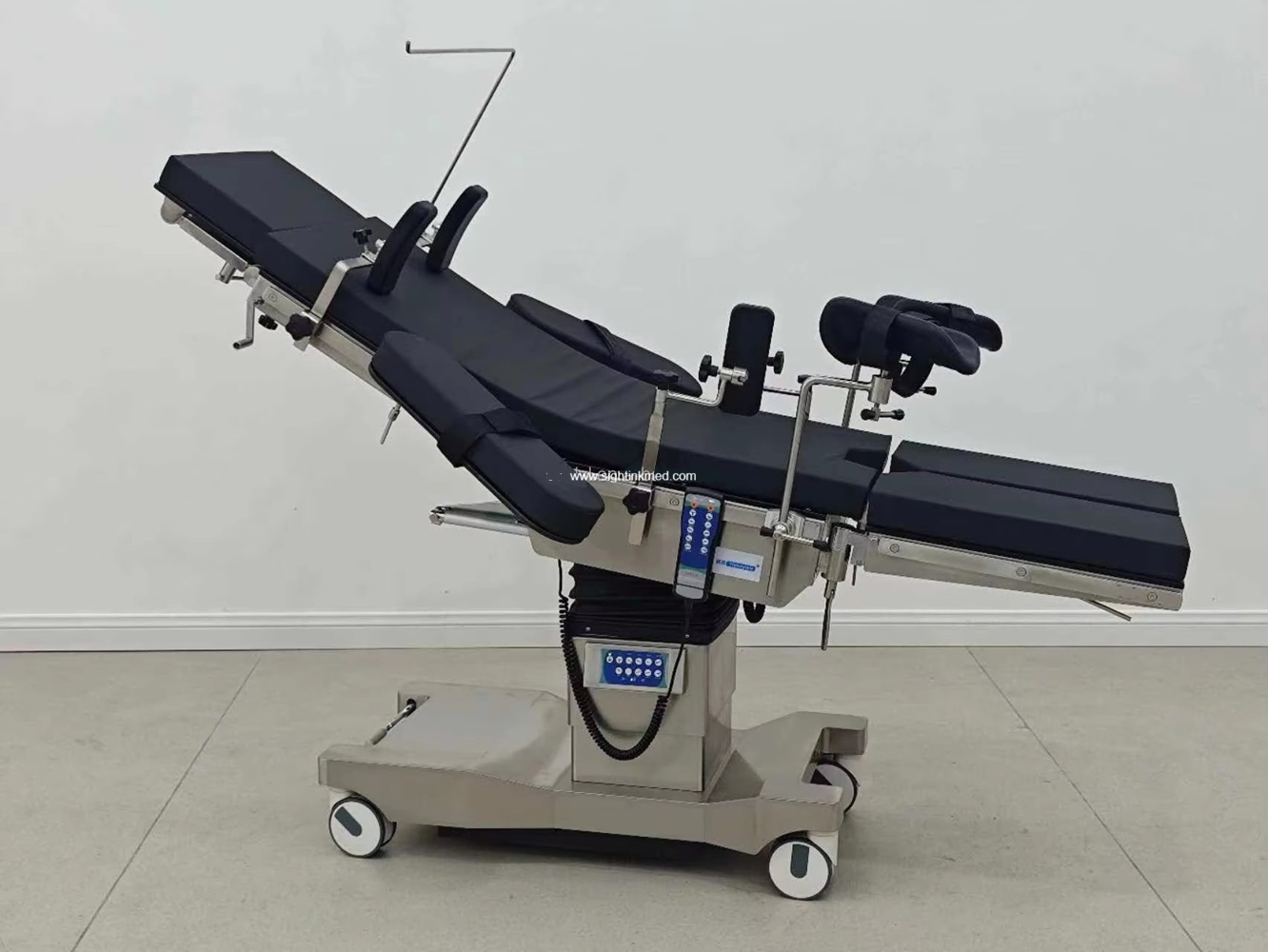 This surgical bed is used for the surgeries of head, neck, chest, abdomen, perineum, limbs, obstetrics, ophthalmology, otolaryngology and orthopedics, etc.