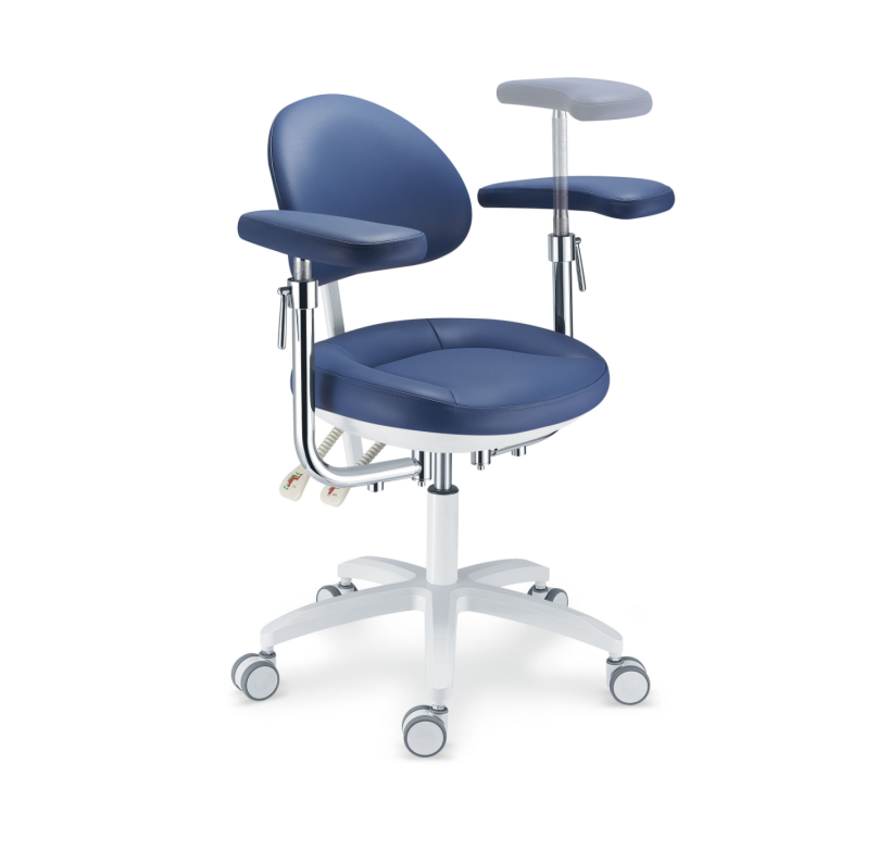 The base is mostly designed with silent universal wheels and brakes, enabling doctors to move the chair within a small range without standing up, and quickly access different operation areas in the patient’s oral cavity. The seat height can be precisely adjusted to suit doctors of different heights and the heights of various dental treatment units, avoiding frequent bending or tiptoeing.