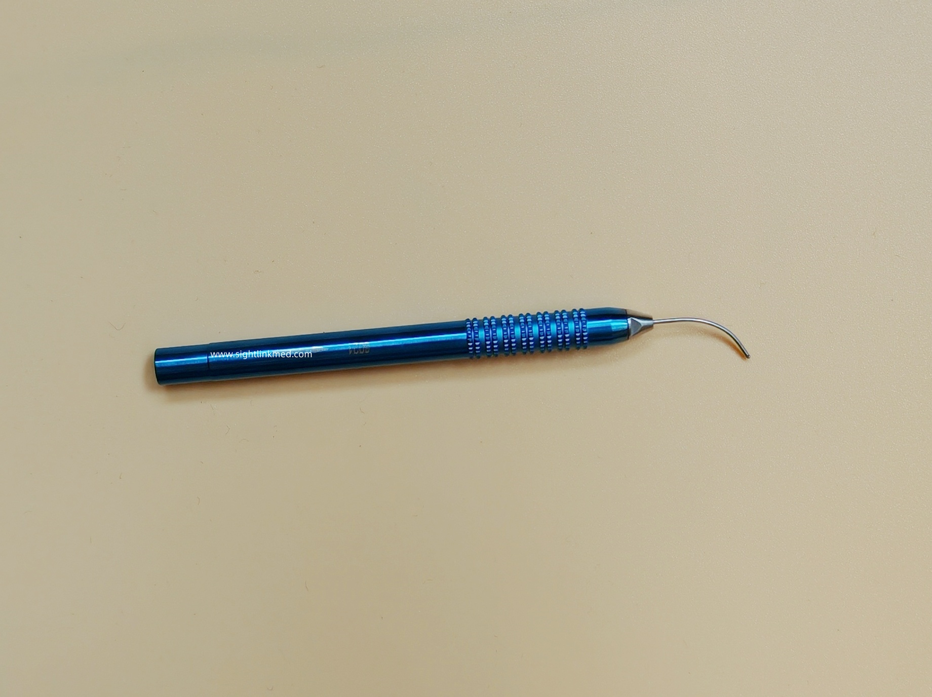 Tthe Irrigation and Aspiration Handpiece has Dual side ports,curved tip,Standard connector,Ergonomic handlefor comfort, Titanium handle&Stainless tip,Blue is lrrigation.