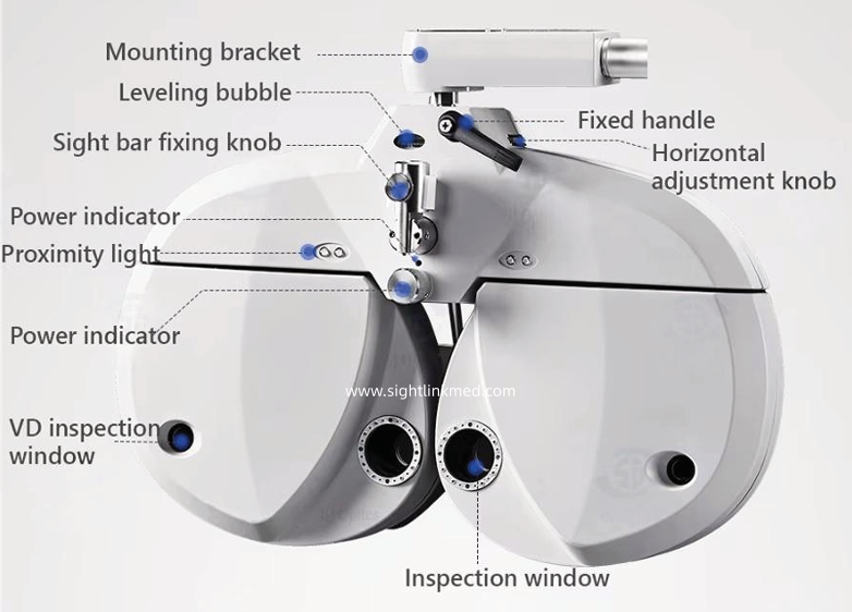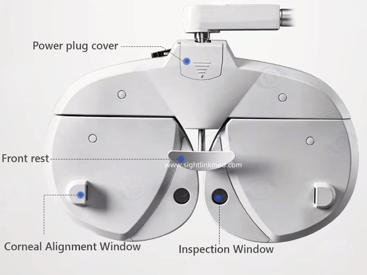 5.Equipped with a horizontal bubble level, adjustable headrest, and ergonomic patient support frame, it ensures accurate alignment and comfortable refraction testing.