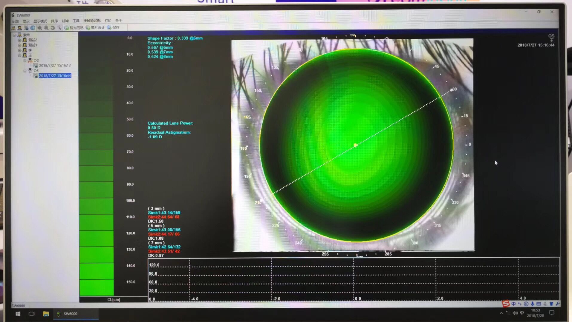 By PLACIDO cone, 32 rings, a total of 11520 points. Through calculation and analysis, used in the clinical diagnosis of corneal astigmatism, quantitative analysis of corneal shape, display the corneal curvature by data or different colors, can display axial curvature map, tangential curvature map, height map, simulated corneal lens map and corneal 3D map. Can be used in preperative examination and postoperative effect evaluation of corneal refractive surgery, can guide wearing contact data lens, to improve the accuracy of adaptive contact lens.