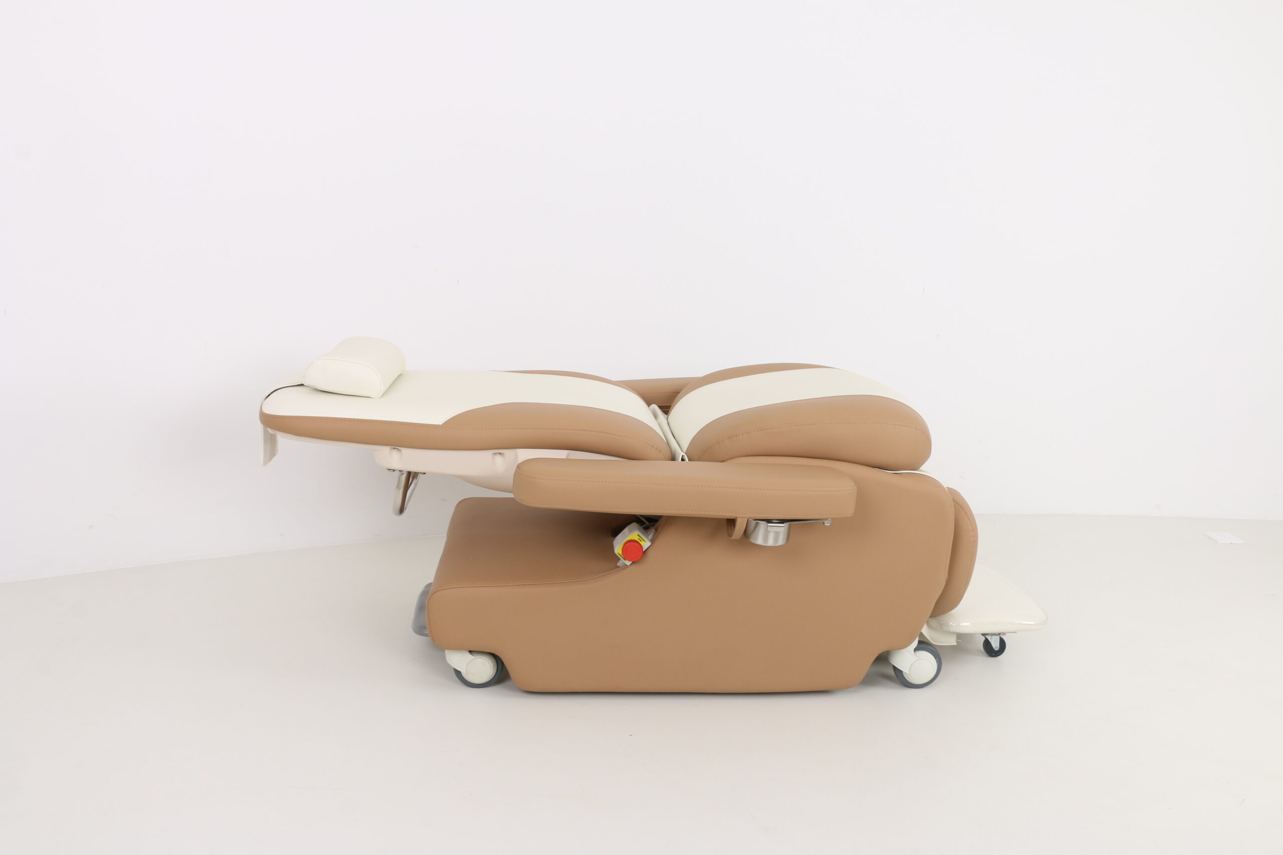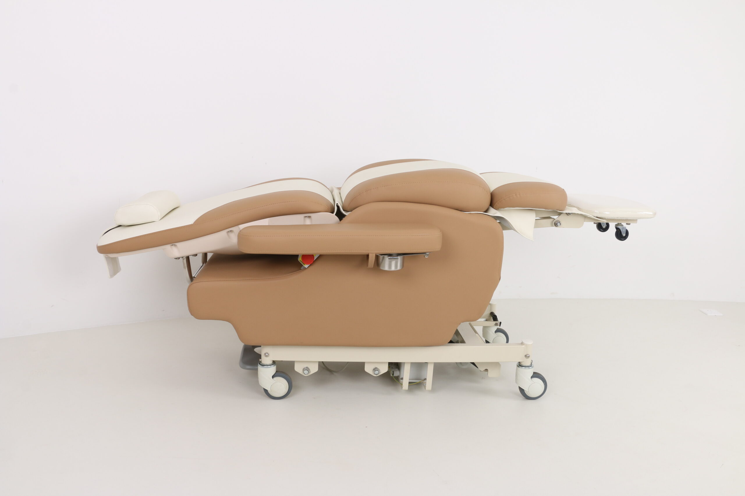 7.The armrest is designed to be turned back 110 degrees, which provides convenience for the patient to go up and down from the side. The armrest is linked with the backrest and wil always remain level with the seat cushion, making the use more comfortable;