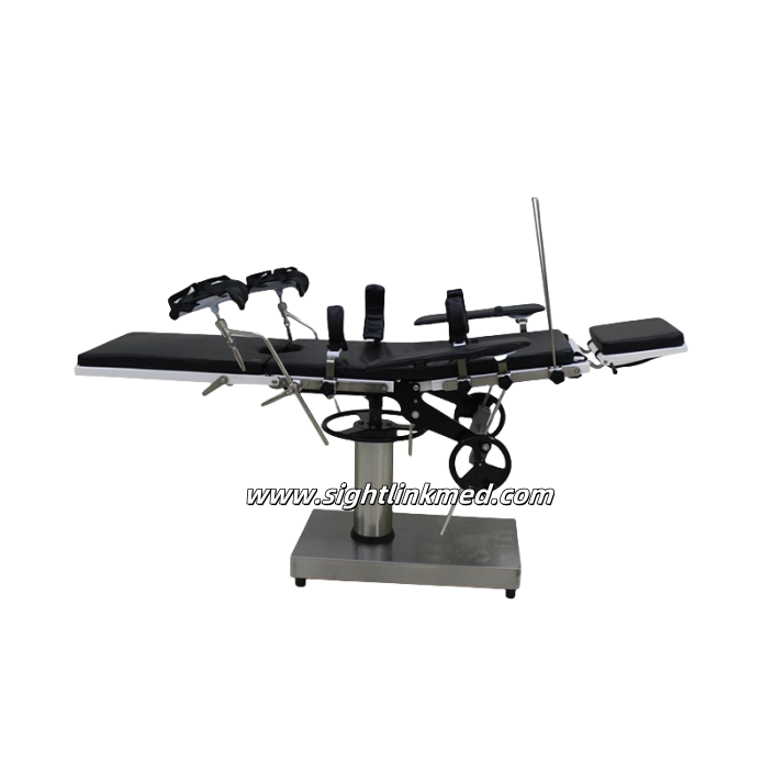 The gynecologist stainless ssteel surgical table is mainly used for head, neck, thoracoabdominal, perineum and limbs surgery in hospital, and can be used for anorectal surgery.The lifting action of the bed body is driven by mechanical hydraulic pump, and the forward/backward tilt,letright tilt, backplanellegplate folding and waist plate liftina are all operated by the mechanical drive side.