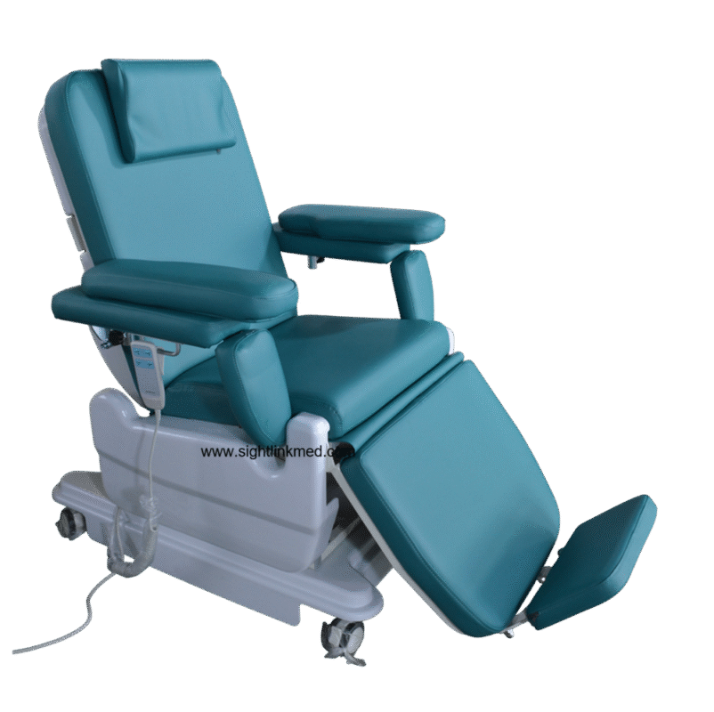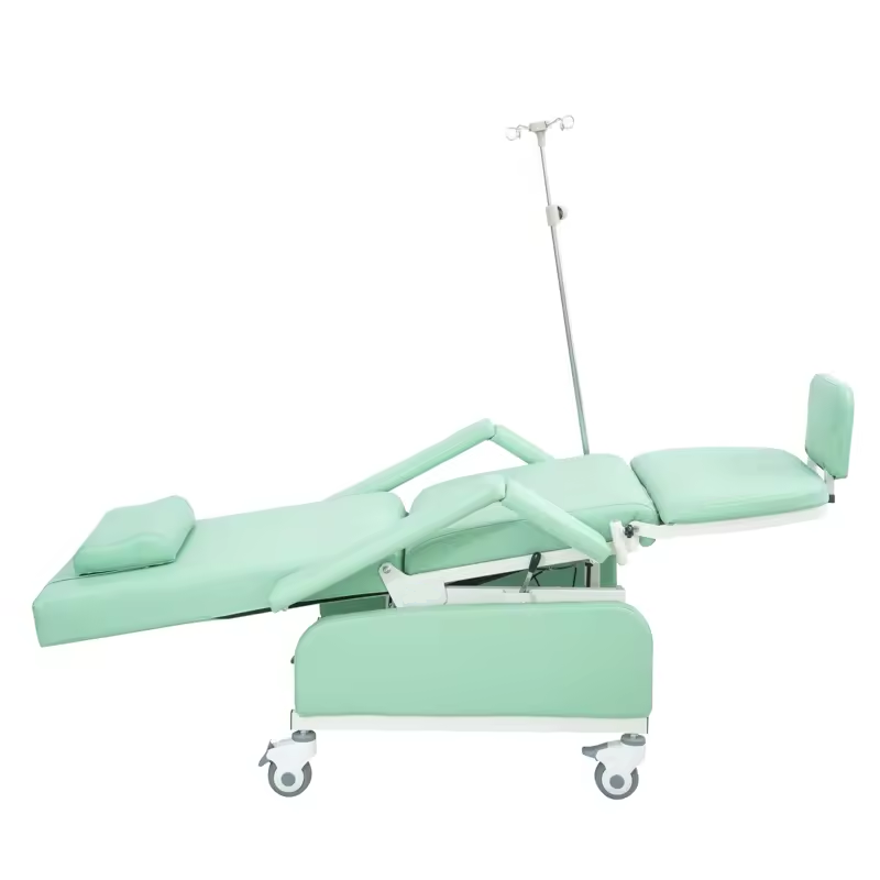 This chair features ergonomic design which can better provide patients with more comfort for table environment, reduce the psychological pressure of patients, and make the process of blood donation or dialysis more comfortable. Chair is used for hemodialysis, blood donation, perdition dialysis, oncology, chemotherapy and rehabilitation.
