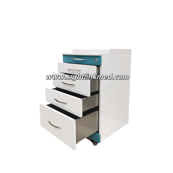 This Dental Cabinet with Drawer has Four drawers, two-compartment plate, with connecting rod lock.