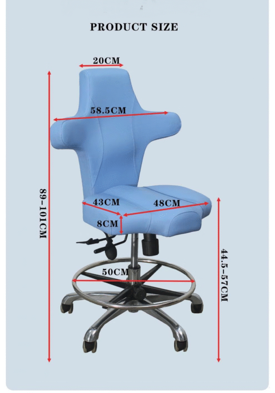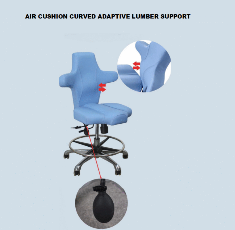 (1) This examination chair is designed according to ergonomic principles to prevent doctors from suffering from arthritis. It adopts a cross backrest and can be operated on both sides.