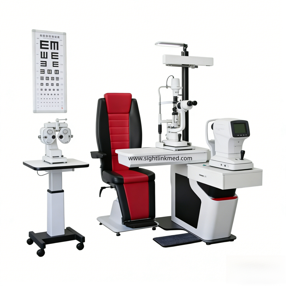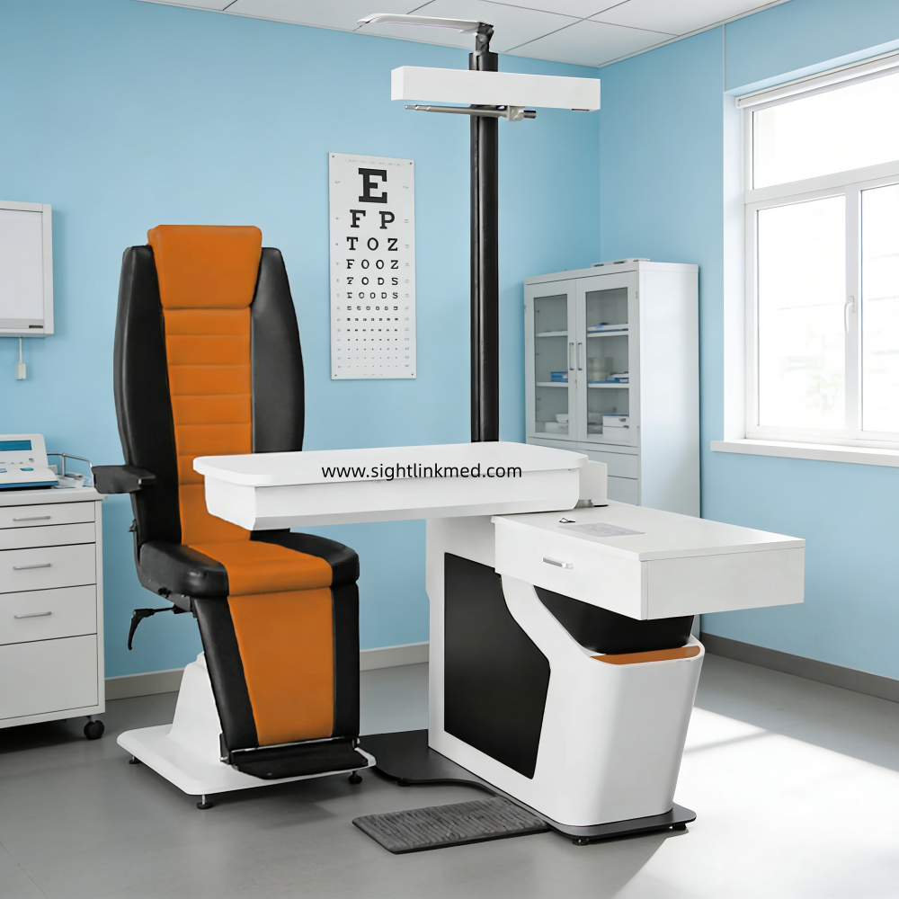 Professional Eye Examination Workstation Automatic Moving Phoropter Arm Ophthalmic Chair Stand Unit