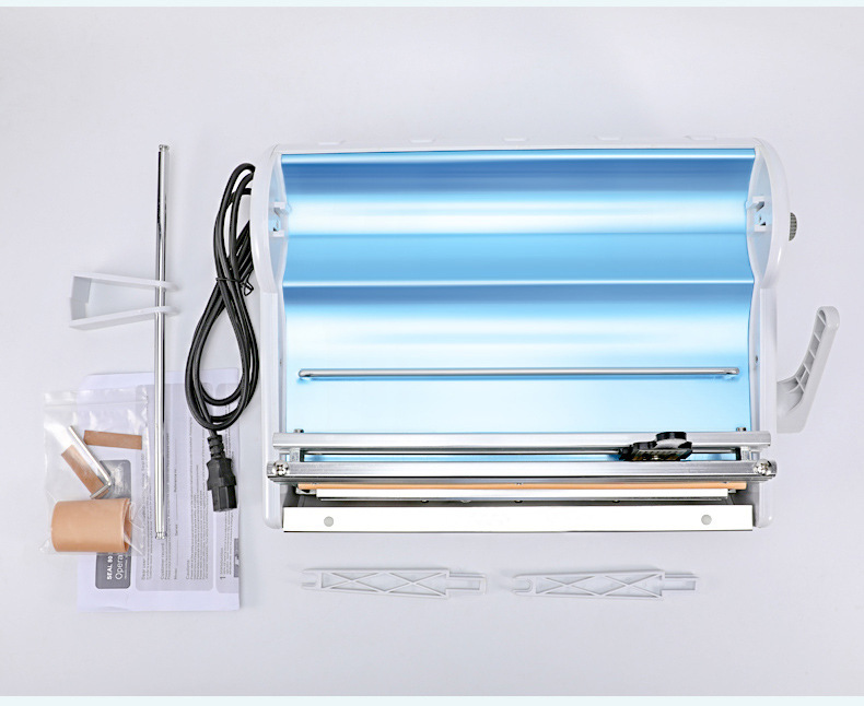This portable disinfection sterilization bag sealer features a corrosion-resistant stainless steel knife set, temperature control with 1 to 6 adjustable gears, and a double-edged cutting knife for fast and convenient operation.